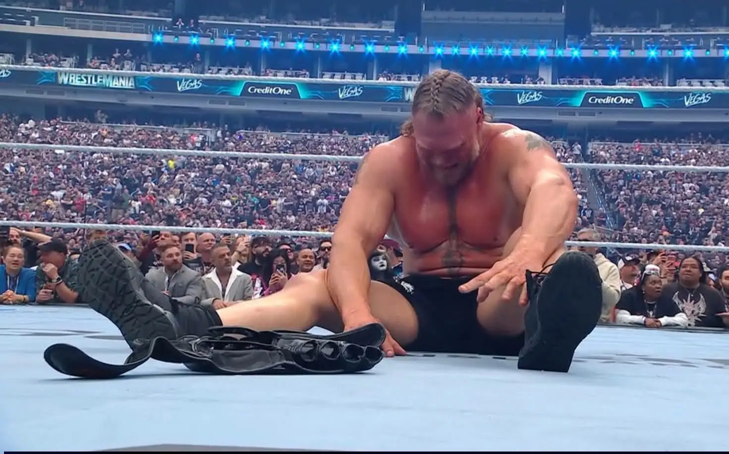 The silence that invaded the stadium at that moment was as powerful as any explosion of emotion that had occurred in the past, because everyone present understood that they were witnessing something much bigger than a simple fight: they were witnessing the possible closure of one of the most feared, respected and legendary careers in the history of the ring. From the beginning of the fight, the atmosphere was charged with tension. Brock Lesnar, known for his intimidating presence and brutal style, entered the ring with the same confidence that characterized him for more than two decades.